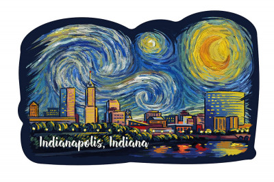 Indianapolis, Indiana - Starry Night - Skyline - Contour