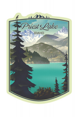Priest Lake, Idaho - Lithograph - Lake & Mountain Scene - Contour
