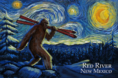 Red River, New Mexico - Starry Night - Winter Bigfoot with Skis