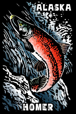 Homer, Alaska - Scratchboard Sockeye Salmon