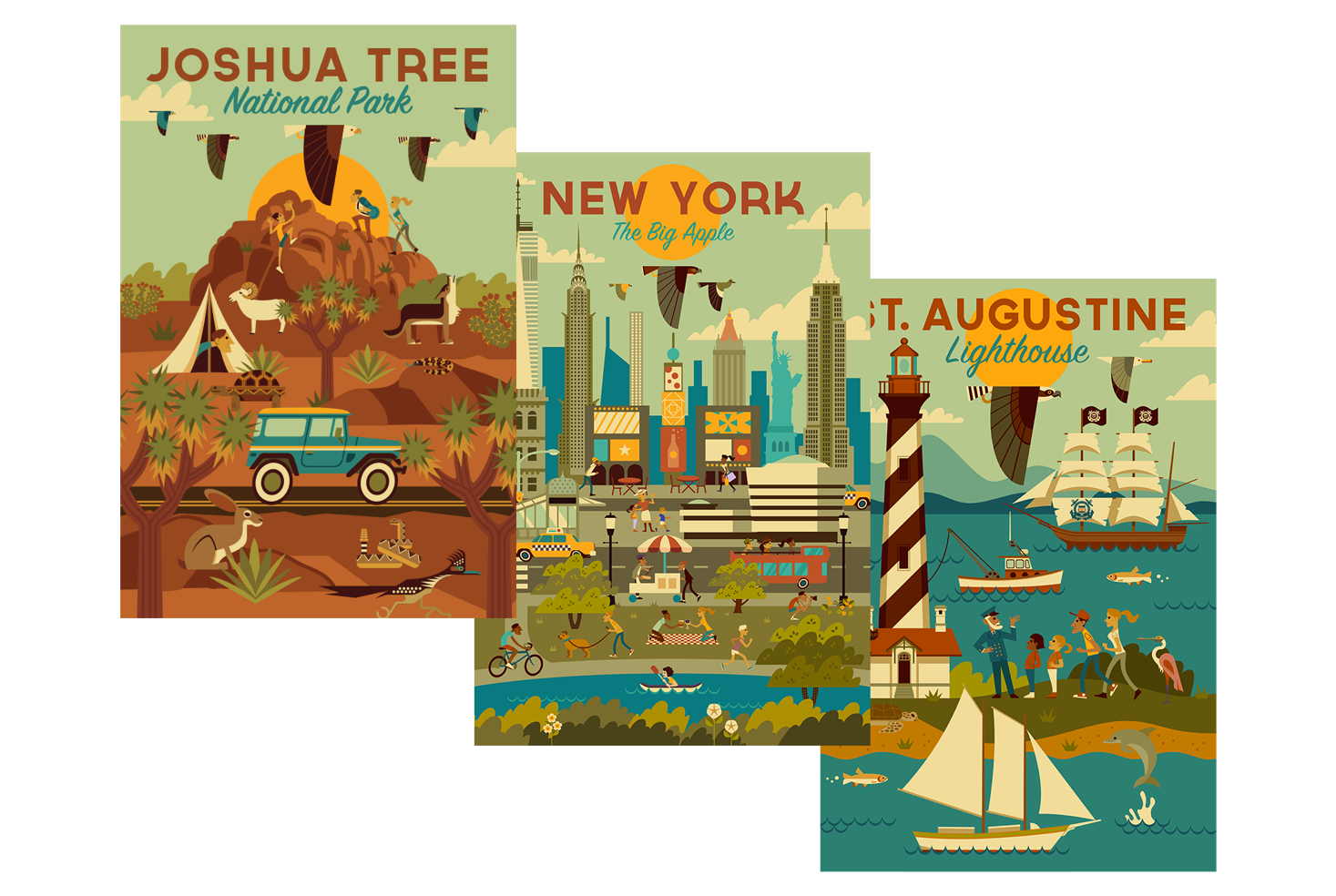 Highlight many features of your location within one piece! This graphic style is one of our most popular and is perfect for reminding visitors to experience everything in your location.